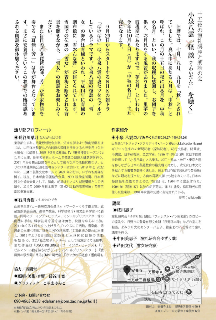 【出演情報】 満員御礼 10月6日(月)十五夜の室礼講座と朗読の会