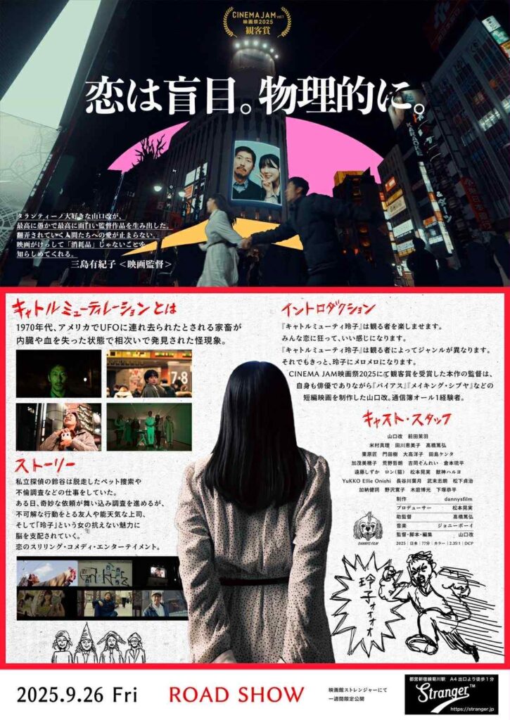 山口改監督の映画「キャトルミューティ玲子」が CINEMA JAM映画祭2025で観客賞を受賞しました! 観客賞受賞作品には単独劇場公開されることになっています。